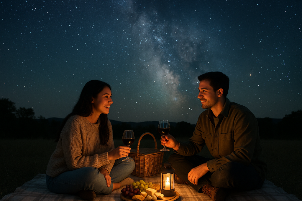 Plan a cozy picnic under the enchanting night sky. Spread out a blanket, enjoy your favorite sandwiches and snacks, and let the soft glow of the stars set the mood. This peaceful night date creates a magical atmosphere, perfect for heartfelt conversations and unforgettable moments under the stars.